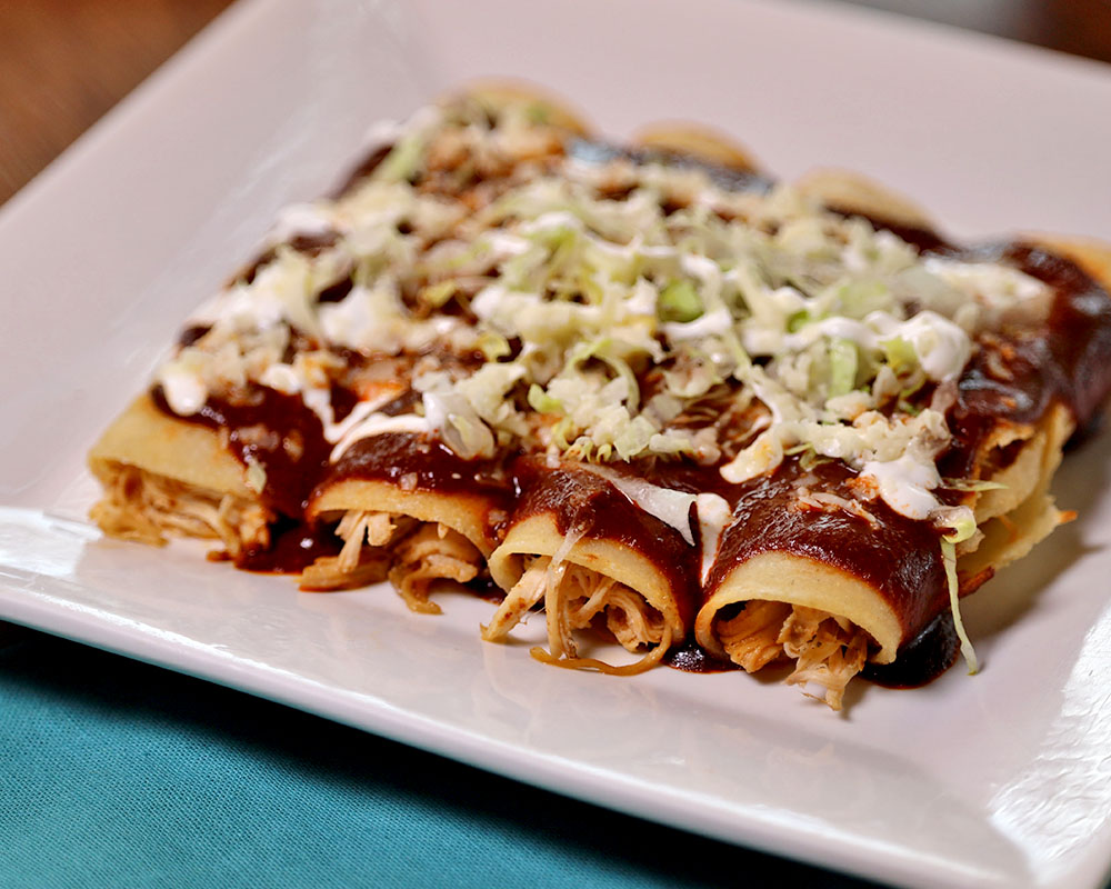 Grilled chicken strips covered in a blend of sour cream and cheese sauce. Served with Spanish rice, refried beans and tortillas. CHICKEN AND CHEESE FLAUTAS 17.99 Three flour tortillas rolled and filled with marinated chicken, deep fried and then covered with cheese sauce. Topped with lettuce, sour cream, cheese, tomato, pico de gallo. Served with Spanish rice and refried beans. NEW! POLLO AL GUSTO17.99