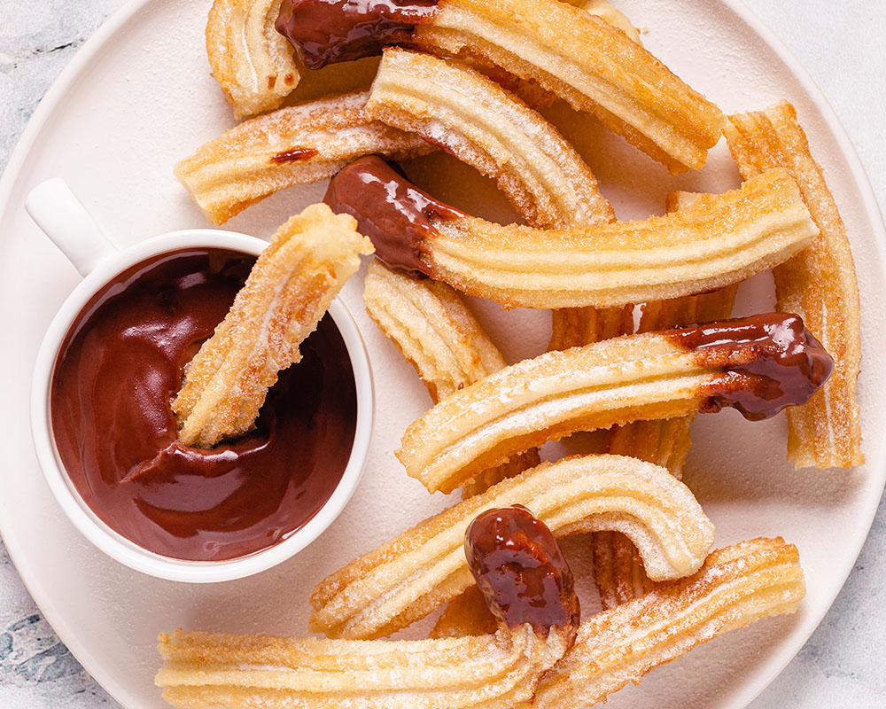 Traditional -Mexican pastry, crusted in cinnamon & sugar. Served warm, drizzled in chocolate, accented with cool whipped cream and a maraschino cherry.