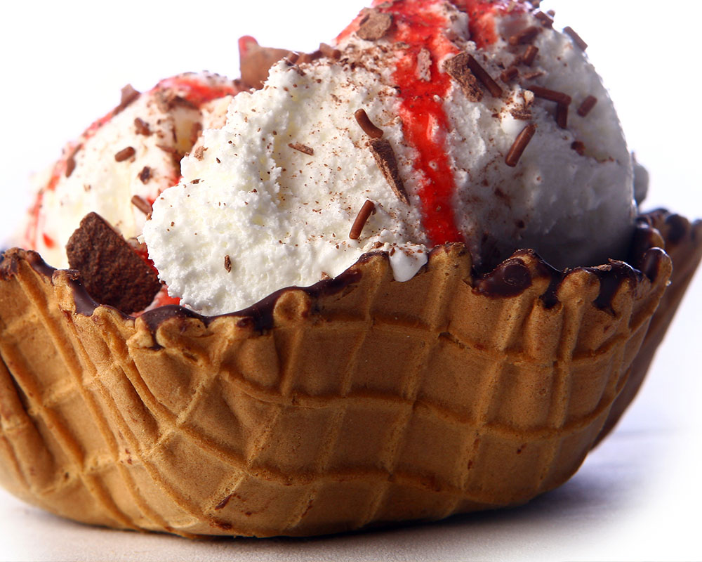 FRIED ICE CREAM 6.99 A vanilla ice cream ball coated in frosted flakes and then lightly fried. Served inside a crispy flour tortilla bowl, topped chocolate, whip cream and a maraschino cherry.
